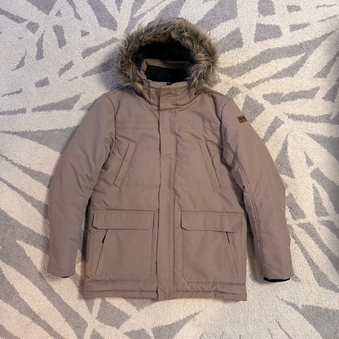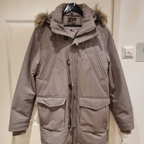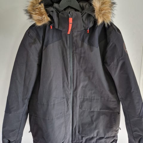 Miesten musta Icepeak-parkatakki, koko 52. Sisäpuolen verkkotaskussa repeämä (kuva) ja vasemman rintataskun vetoketju rikki (kuva), molemmat korjattavissa. Muutoin hyvässä kunnossa.