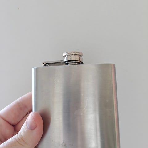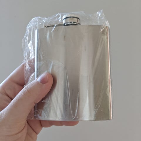 Taskumatti, 0,25 l ja 2 snapsilasia , jossa nahkainen vyöte ja metalliset lintukuviot. Hyvässä kunnossa, ei säröjä.
