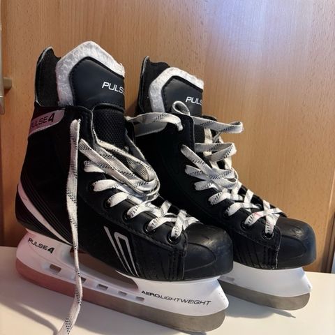 Ok-kuntoiset hokkarit ensi talven rientoihin. Ei vaadi kuin teroituksen ja eikun menoksi. Sisämitta n. 23-23,5cm. Terän pituus 240mm.