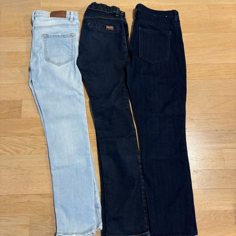 Tyttöjen vaatepaketti 128cm. Tavalliset farkut, printtifarkut ja uudet jegginsit.
