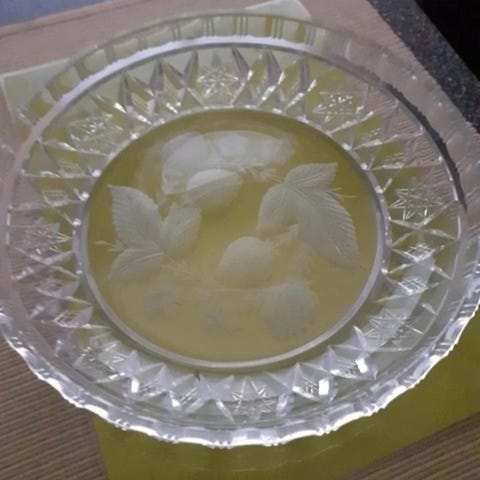 Posliininen Falun-merkkinen mintunvihreä tarjoiluvati. Sisältä kiiltävä, ulkopuolelta matta.