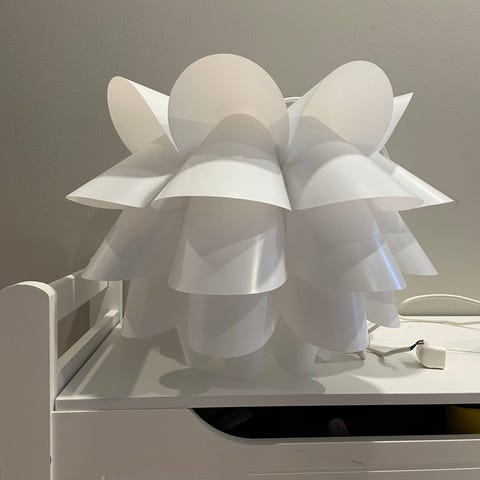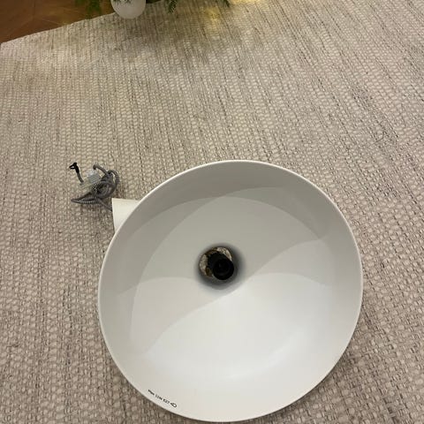 Myydään Ikean Ringsta valkoinen lampunvarjostin sekä Jällby musta ripustinsarja tekstiiliä messingöity. Varjostimen halkaisija 33cm.