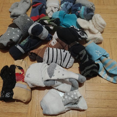 Paketissa 11 paria sukkia ja 5 paria villasukkia.