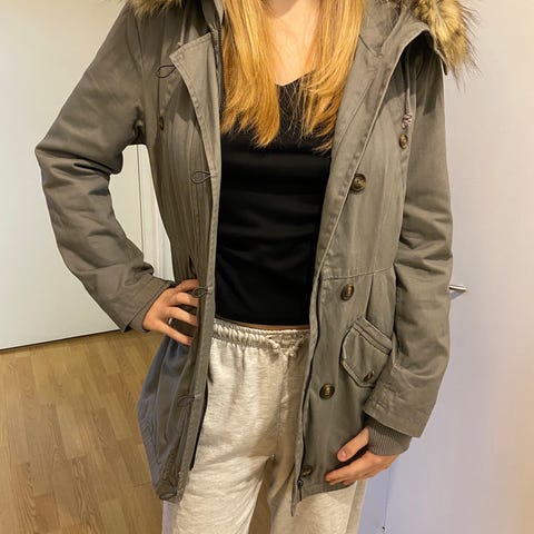 Tyylikäs Kocca merkkinen takki Italiasta. Kokomerkintä M, mutta vastaa ennemmin kokoa S. Mohairia 16%, villaa 5%.