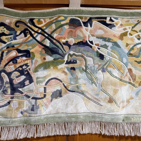 Suuri kuvakudos, 75x2 metriä x kaksi kpl. Kudottu kangaspuissa. Myydään tarjouksen perusteella. Tarjoa rohkeasti Kuljetusapua saatavilla, tarpeettomana