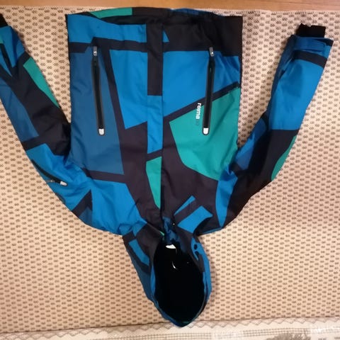 Myydään Reima Tec - merkkinen laskettelutakki koko 152cm, joka toimii myös kuoritakkina. Takissa on irroitettava huppu, itroitettava sisätakki (kts kuva 5 ja6), vetoketjulliset taskut, helmassa sisäpuolella kiristysnauha, korkea kaulus.