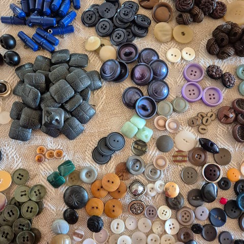 Vanhat napit, ankkurinappi 5 kpl 1.5 cm ja viininpunainen kukkanappi 3 kpl 2.7 cm.