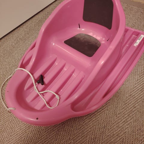 Myydään vaaleanpunainen vauvapulkka.