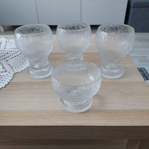 Timo Sarpanevan 1970-luvun alussa suunnittelemat, Iittalan Kekkerit-sarjan ”Ölkky” 40cl olutlasit (8kpl). Lasit ovat kuin uudet, korkeus 14cm, halkaisija 9cm, väri kirkas.