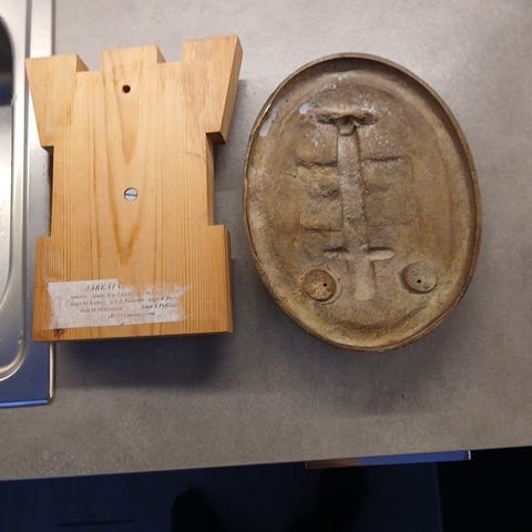 Helvi Hyvärisen valurauta reliefi. Mitat 17*35.