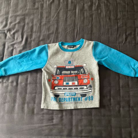 Myydään baggymalliset trikoohousut, diy, koko 90. Kuviona paloautoja.