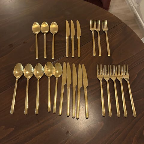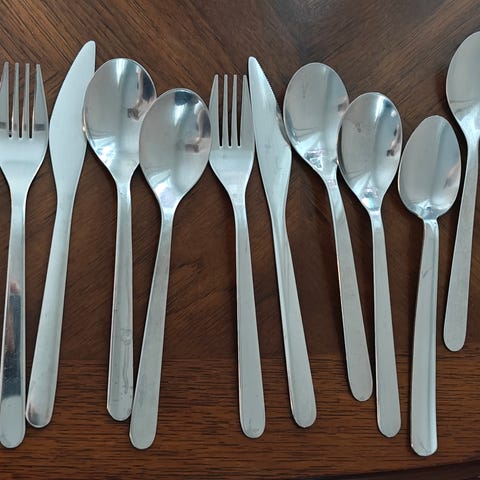 Myydään käytetyt aterimet, kuusi kutakin.