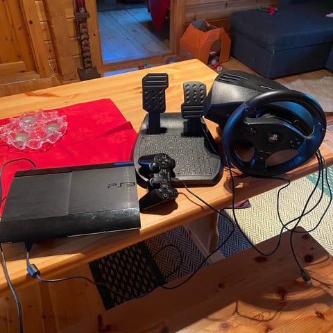 Myydään ps3 ratilla ja polkimilla ei muuta ohjainta kuin ratti. Mukaan jotain pelejä.