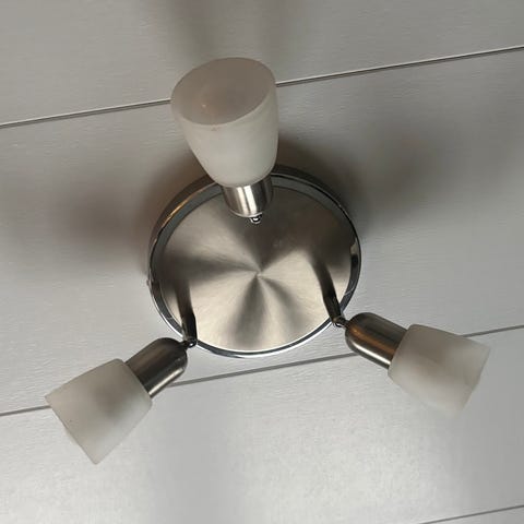 Kaksi Ikea Häggås kattovalaisimia. Toisesta yksi muoviosa irti, valo siihen silti syttyy. Muuten siistit ja hyvä kuntoiset