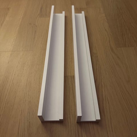 Kaksi käyttämätöntä mustaa puista tauluhyllyä. Leveys 90cm. Nouto Muotialasta Tampereelta.