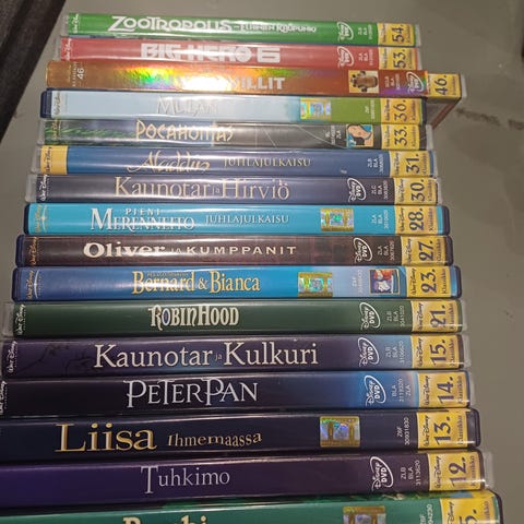 Kannet ja levyt pääsääntöisesti hyvässä kunnossa. Toimivia ovat ja puhuttu suomeksi. Voin tarkistaa pyydettäessä vielä uudestaan tietyn leffan. Suluissa on maininta jos on jotain erityistä huomioitavaa.