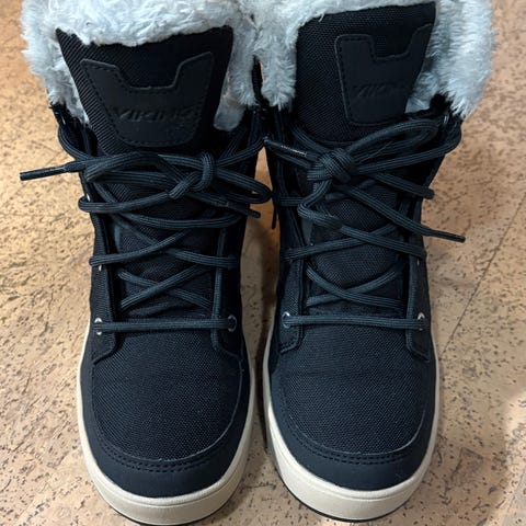 Uutena ostetut yhden kauden käytetyt lasten mustat Viking talvikengät. Koko 35 (sisämitta 23x8cm)