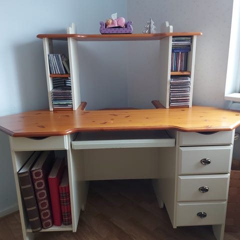 Hyvässä kunnossa oleva mäntykirjoituspöytä.