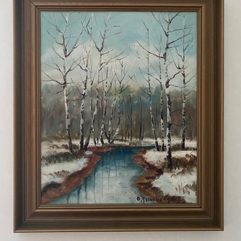 Tuntemattoman taiteilijan öljyvärityö Koivikko. Työn korkeus on 53 cm ja leveys 36 cm.