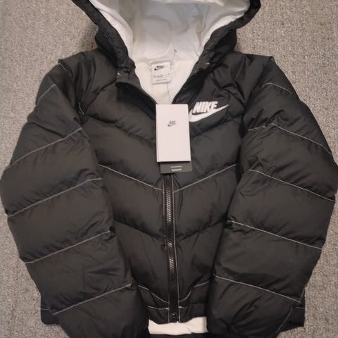 Myydään hyvässä kunnossa oleva Nike -toppatakki. Juniorikoko L eli 147-158cm. Takissa on kiinteä huppu, sivutaskut vetoketjulla ja pehmeä fleecevuori hihansuissa. Takki on ehjä - vain pieni pintanaarmu helmassa vasemman taskun kohdalla. Ei tahroja tai pinttynyttä likaa. Kotitaloudessa ei lemmikkieläimiä.