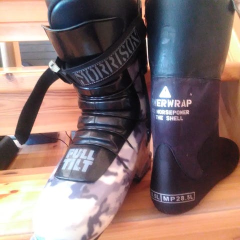 Erittäin hyväkuntoiset, vähän lasketut Full Tilt Rumour monot (22,5): klassinen Full Tilt-rakenne, flex keskijäykkä (6). Omaan jalkaan sittenkin liian isot ja siksi jääneet vähälle käytölle. Muutaman vuoden varastossa odotelleet jalan kasvua, - turhaan. Myynnissä myös muualla.