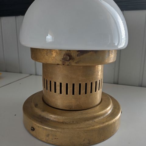 Orno Bau seinä / kattovalaisimia. Messinkisellä rungolla, opaalilasikuvulla & E27 kannalla. Messinkiosissa hieman ajan patinaa. Leveys n.30cm, korkeus n.20cm. Hinta 80€/kpl.