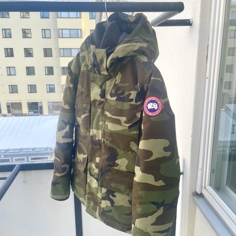 Erittäin hyvässä kunnossa oleva aito parka. Ajan henkeen sopiva camo- kuviointi. Kuittia ei tallessa, useamman vuoden ikäinen. Nouto E- Haagasta tai toimitus Helsinki- Espoo- Vantaa sopimuksen mukaan.