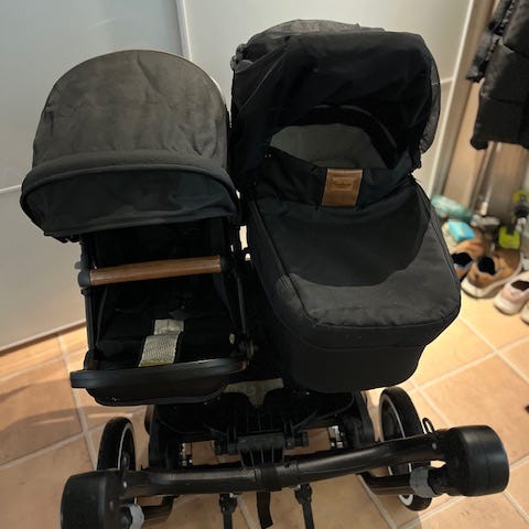 Emmaljunga NXT twin runko ja 2x ergo ratasistuin. Kaikki ostettu uutena vuonna 2020. Säilytetty aina sisällä lämpimässä ja huollettu ohjeiden mukaisesti. Ohjekirja mukaan. Kunto erinomainen istuinten rungoissa olevia jälkiä lukuunottamatta, kosmeettisia, mitkä ei vaikuta käyttöön. Heijastinteippiä lisätty rattaiden runkoon. Työntöaisan nahkakin säilynyt ehjänä ja siistinä. Eturenkaat vaihdettu juuri ennen käytön loppua uusiin. Isot ja kääntyvät mutta myös lukittavat eturenkaat kulkee säässä kuin säässä kevyesti. Mahtuu ovista ja julkisiin. Runkoa voi käyttää ristiin kaukalon, vaunukopan ja ratasistuimen kanssa myös eri ikäisten sisarusten kesken tarpeen mukaan. Yksi kaukalon adapteri löytyy myös, käy mm. Maxi cosiin. Tästä sovittava erikseen, jos kyseinen lisäosa kiinnostaa.