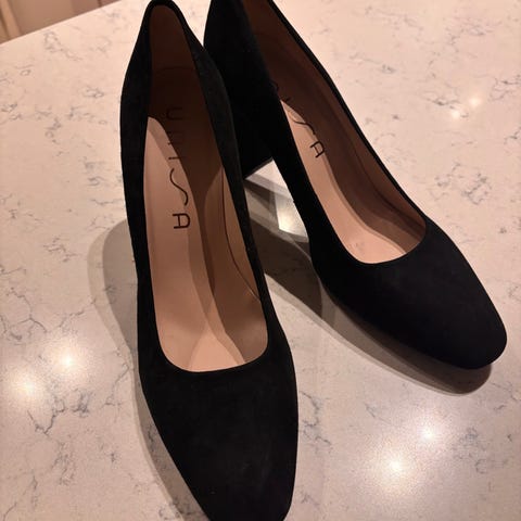 Muutaman kerran käytetyt kauniit vaaleansiniset Unisan mokkanahkaiset korkkarit. Pohjat ovat nahkaa, joten niihin on jäänyt jälkiä. Päältä ja sisältä kengät ovat moitteettomat.