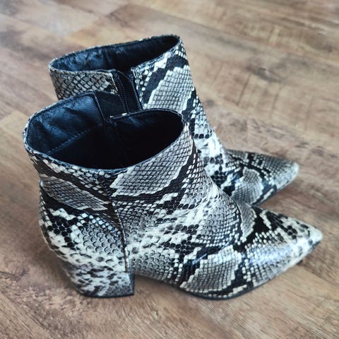 Muutamasti pidetty, kevytvuoriset, hyväkuntoiset naisten keinonahkanilkkurit.