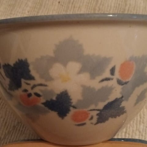 Myydään Pentik Mansikka -sarjan tarjoilukulho. Kulhon korkeus on 10 cm ja halkaisija ylhäältä 18 cm, tilavuus n. 1,4 l. Hyväkuntoinen, ei säröjä tai halkeamia.