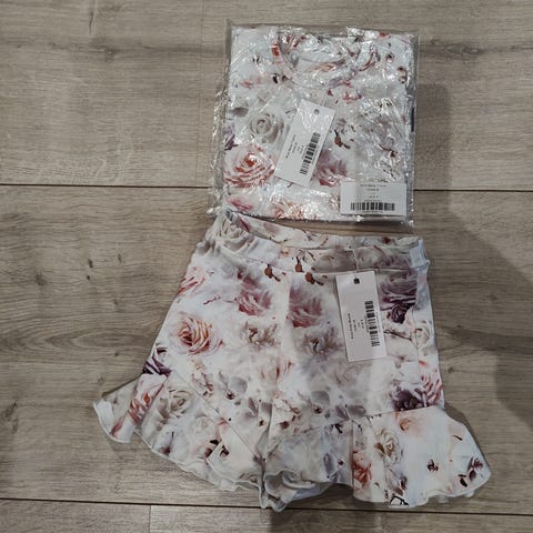 Uudet Gugguun t-paita ja frillashortsit koko 110