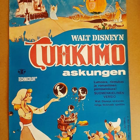 Uusi elokuvajuliste Levoton Tuhkimo,,koko 70 X 100 cm.Ostajalle postikulut tai nouto Tuusniemeltä.Kulkeutuu omien menojen mukana Kuopio tai Joensuu!