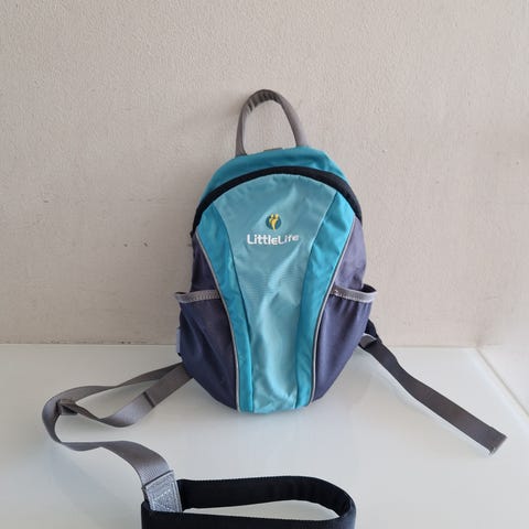 Reppu irrotettavalla talutushihnalla. Lisäturvallisuutta kävelemään oppivalle. Tai kiva pieni reppu päiväkodin retkille ym.