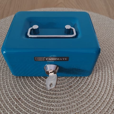 Uudehko hyväkuntoinen kassalipas, musta. Kaksilla avaimilla ja lukko toimii hyvin.