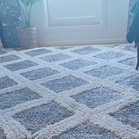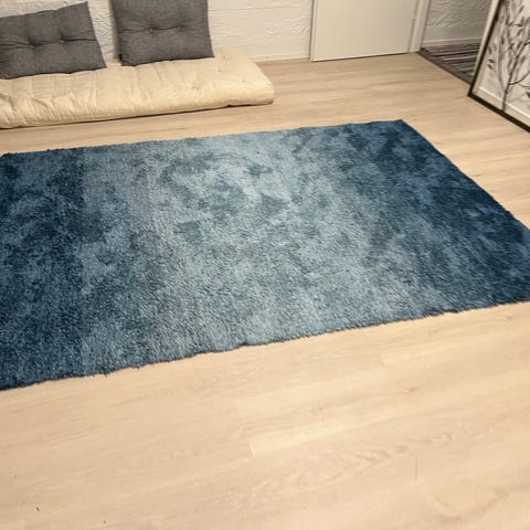 Kuvissa maton yksi reuna on hieman koholla, sillä matto on ollut muuton jälkeen rullalla. Avattu nyt vain kuvausta varten.