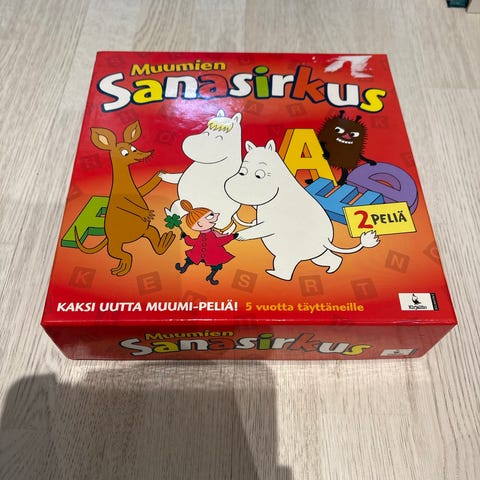 3 lasten peliä, alkaen 4v. Muumin kirjainpeliä käytetty eniten, kuitenkin vielä hyvässä pelikunnossa. Muumi Dominossa laatikko kärsinyt ja ensimmäistä tietopeliä pelattu muutamasti.
