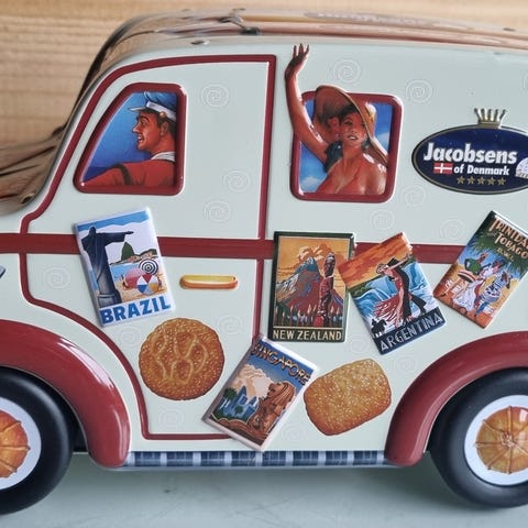 Danisa pikkuleipäpurkki. Danish speciality foods aps. Tanskalainen pikkuleipäpurkki. Halkaisija 15 cm ja korkeus 6,5 cm. Erinomainen kunto.