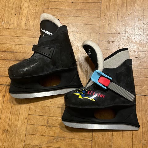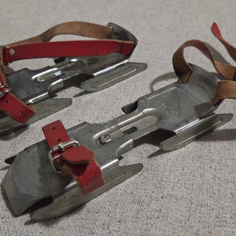 Ensihokkarit. Kokoa ei merkattu. Pohja on 17cm pitkä kengän sisältä. Vaatii teroituksen.