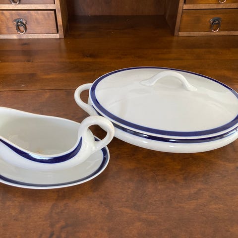 Hienot käsinmaalatut Sini astiat kerralla.