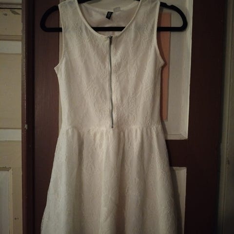 Myydään kaunis pitsinen Cream-merkkinen mekko. Mekkoa on käytetty kaksi kertaa ja on kuin uusi. Mekossa on hihoja lukuunottamatta puuvillainen vuori, joten ei ole läpikuultava. Vyötäröllä kaunis samettinen nauha.