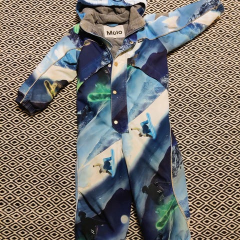 Setti on ollut käytössä kahdella lapsella ns. parempana/siistimpänä haalarina. Pepussa ja polvissa pientä pehmentymää, mutta ei reikiä tai tahroja.