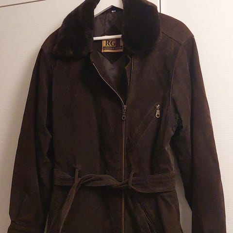 Kuvan lähes käyttämätön Fashion Crew mokkanahkaa oleva takki, koko 36, reilu koko, A-linjainen malli, taskut molemmin puolin. Voin lähettää.