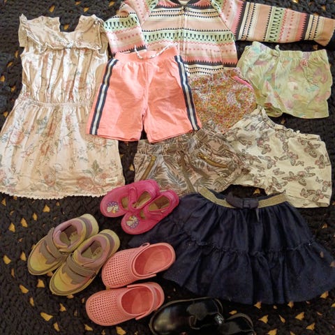 Tytölle kesä vaatteet. Koko 98/104cm. Ei muuta, vain lapsille ovat pieniä. Uudet tai vastaava kunto. Valo läikät. Suoran kaapista, niin silitystä kaipaa. Hinta 1€ alkaen. Voin lähettää. Osa on jo myyty, kysymällä selviää