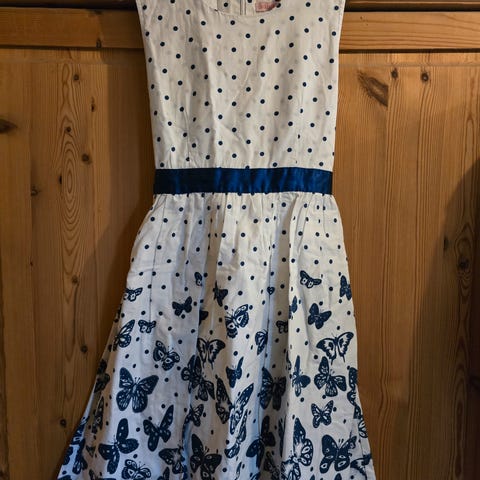 Koosta en ole ihan varma, koska mekossa ei lue. Mekko on ostettu Peuhikselta. Pari tahraa.