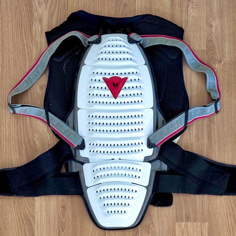 Kerran kokeiltu selkäpanssari lautailuun, lasketteluun ja maastopyöräilyyn. Koko S, 30-41 cm vyötäröstä hartiaan. Air Vest, Komperdell Cross Protection.