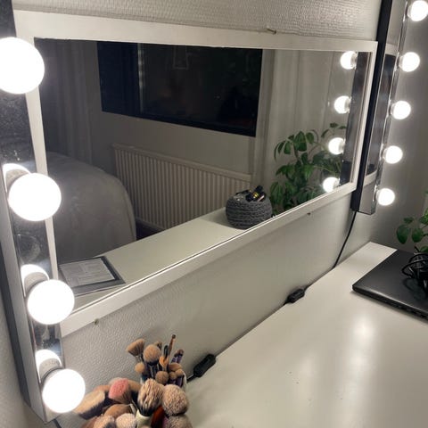 Joitakin vuosia vanha, mutta vähäiselle käytölle jäänyt valkoinen peili. Voi ripustaa sekä pysty- ja vaakasuuntaan. Itse peili erinomaisessa kunnossa, ei naarmuja tai halkeamia. Pieni jälki kehyksen reunassa ja reunoista vähän kulunut maali (helppo maalata), näistä kuvat.