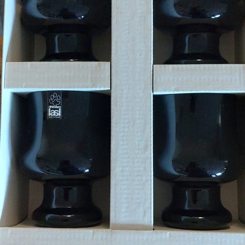 Lasiastiat, Riihimäen lasi, 6 kpl. Tuotteita valmidtettu vuosina 1974-1975.