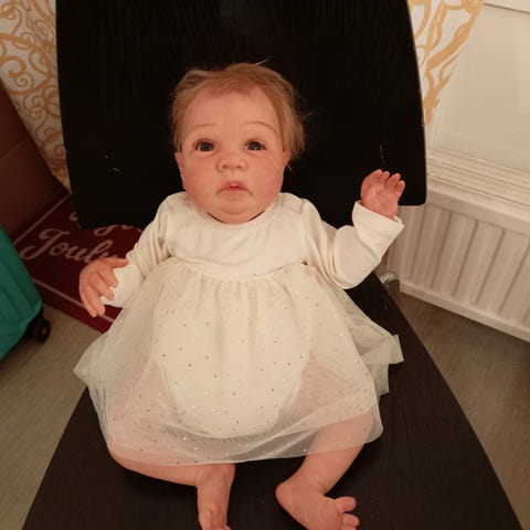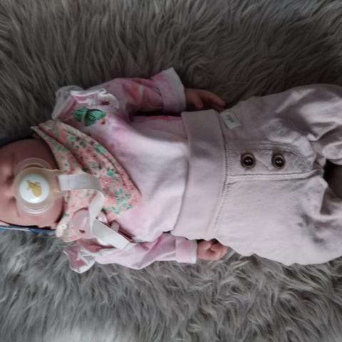 Aito reborn nukke, Remi-Ashton by Cassie Brace. Hiukset tummanruskeaa laadukasta Mohairia. Täytetty ja painotettu lasihiekalla, silikonipelletillä ja vanulla. Nivelletty kangasvartalo. Maalattu useissa eri kerroksissa verisuonia myöten. Nukelle tulee mahalevy mukaan, sekin on yksityiskohtaisesti maalattu.