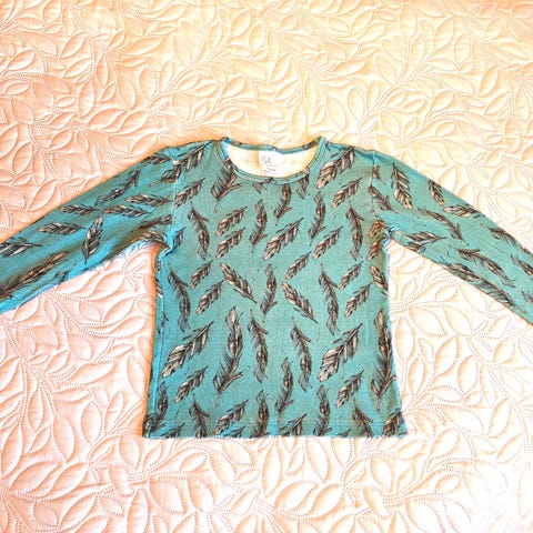 Melli Ecodesign merkin poppari printti t-paita. Valkoinen ja turkoosi printti. Kokomerkintä 98-104. Pohjaväri ei ihan kirkkaan valkoinen enää. Muuten siisti kuntoinen käytetty.